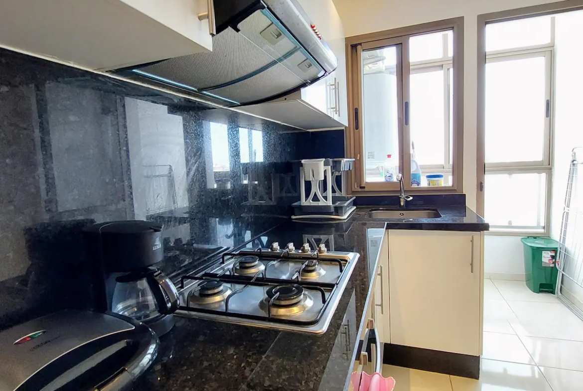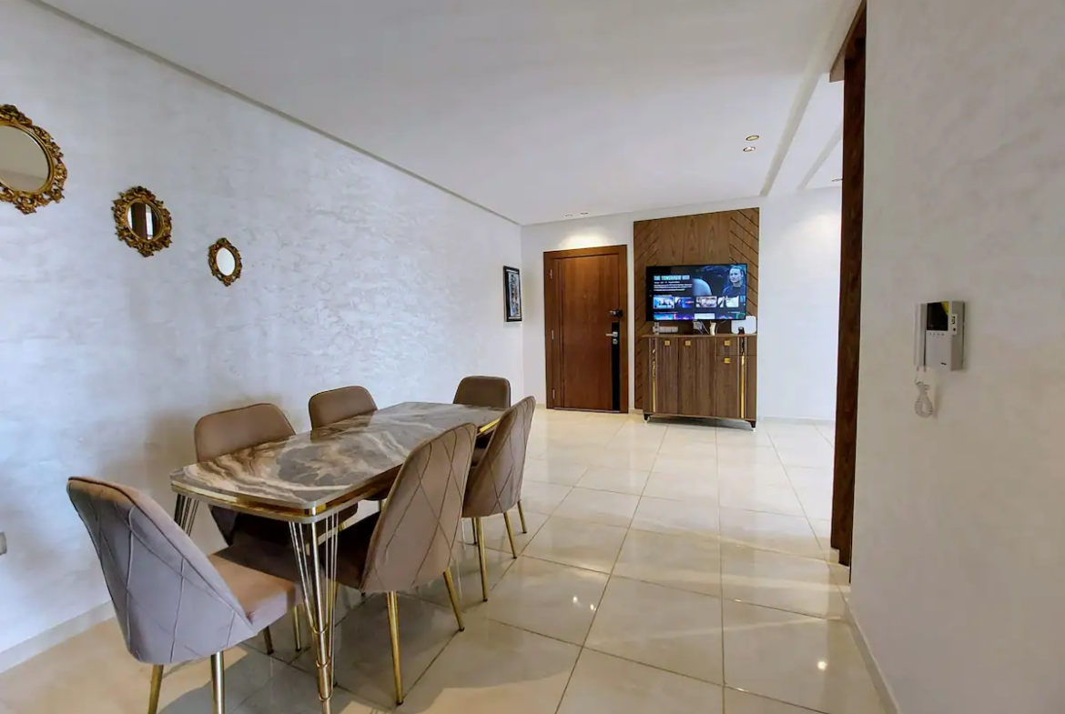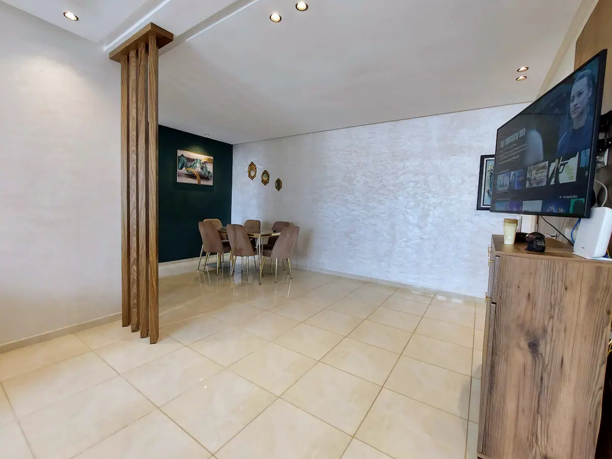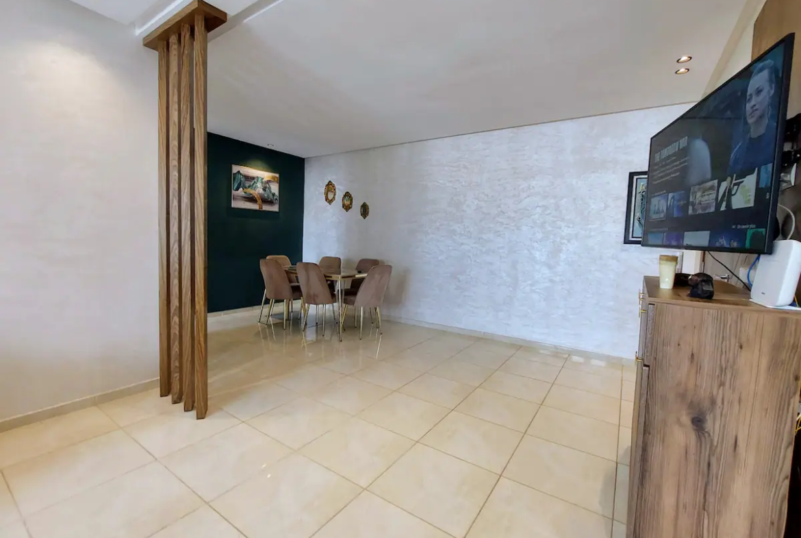 With a spacious living room, 2 bedrooms, a workspace and 2 modern bathrooms, our place is perfect for professionals and families. You’ll enjoy comfortable sleeping arrangements in each of the two bedrooms, as well as a dedicated workspace, perfect for business travelers or remote workers. Our 100Mb optic fiber internet ensures that you’ll have fast and reliable internet access throughout your stay. Our fully equipped kitchen has everything you need to whip up delicious meals during your stay.