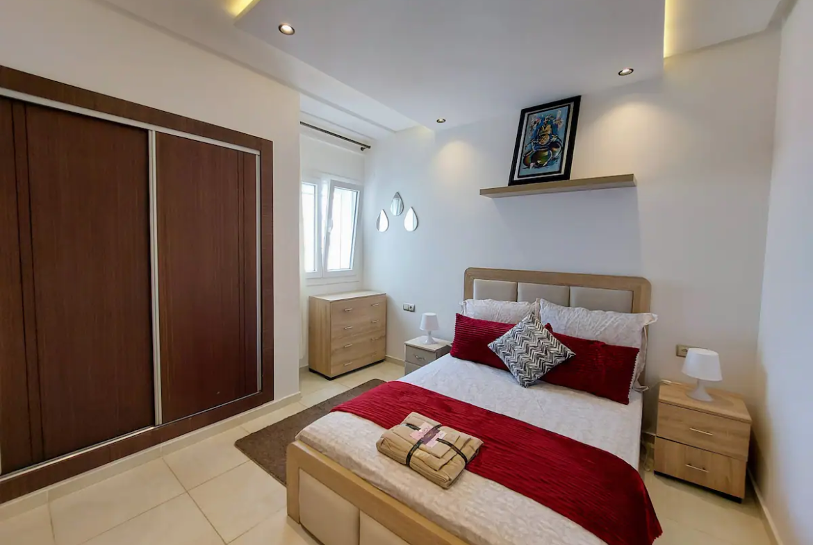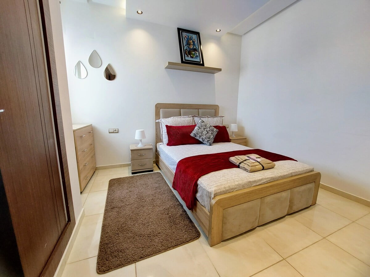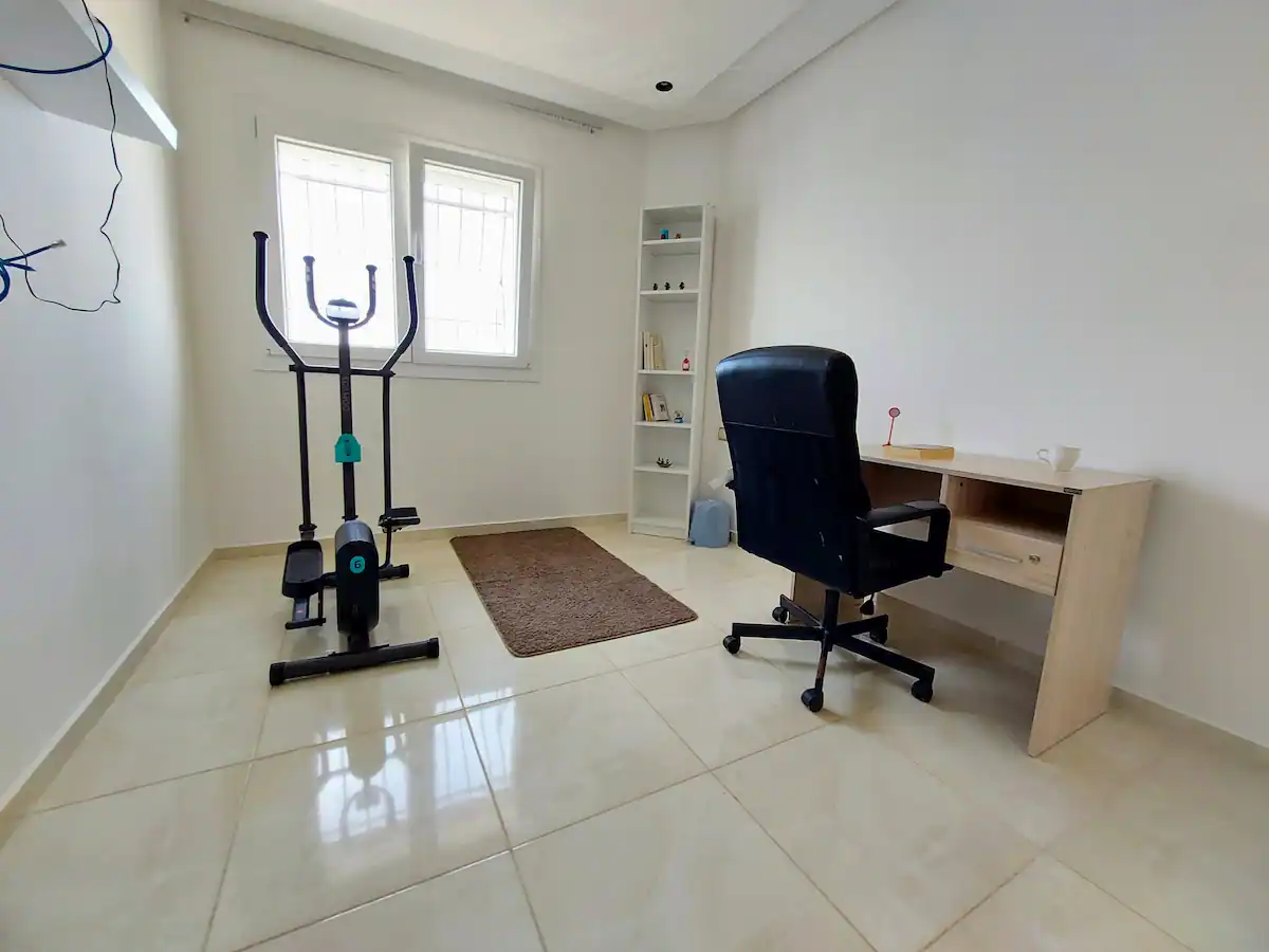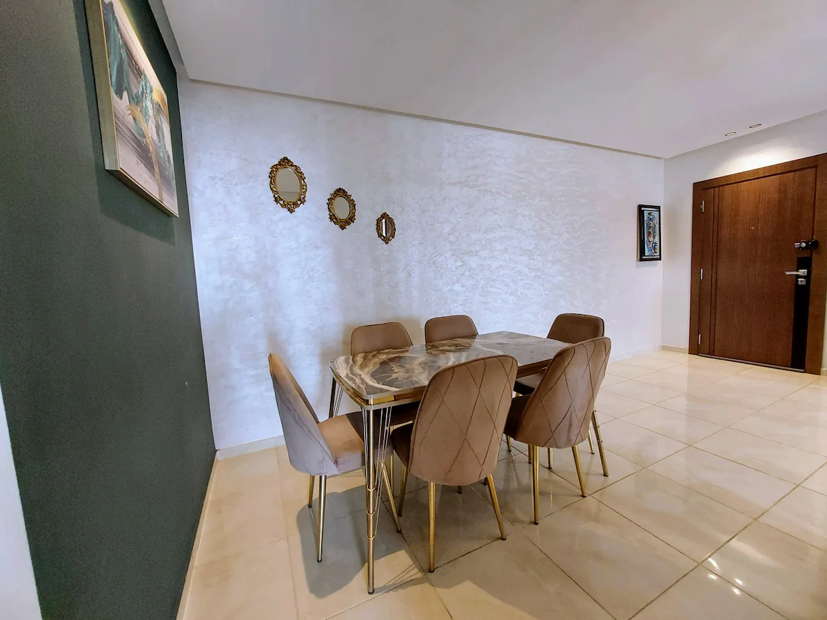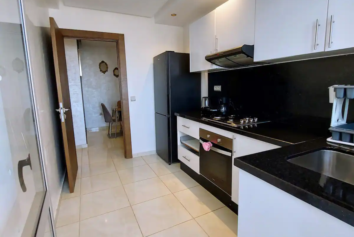 With a spacious living room, 2 bedrooms, a workspace and 2 modern bathrooms, our place is perfect for professionals and families. You’ll enjoy comfortable sleeping arrangements in each of the two bedrooms, as well as a dedicated workspace, perfect for business travelers or remote workers. Our 100Mb optic fiber internet ensures that you’ll have fast and reliable internet access throughout your stay. Our fully equipped kitchen has everything you need to whip up delicious meals during your stay.
