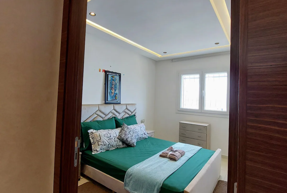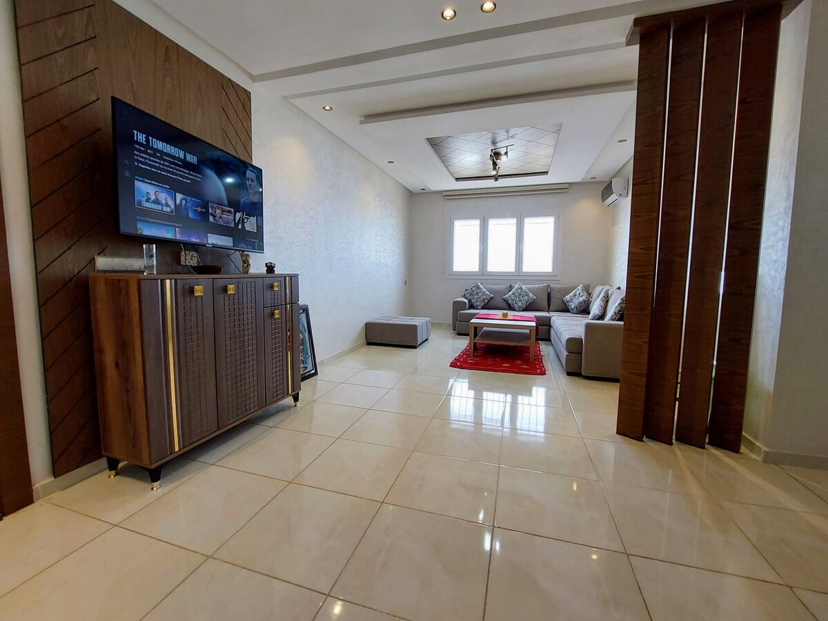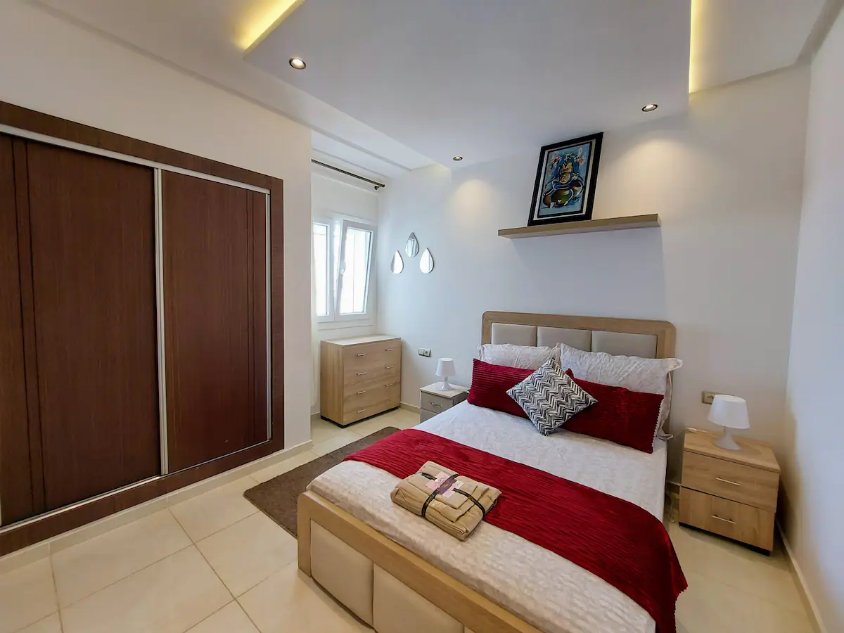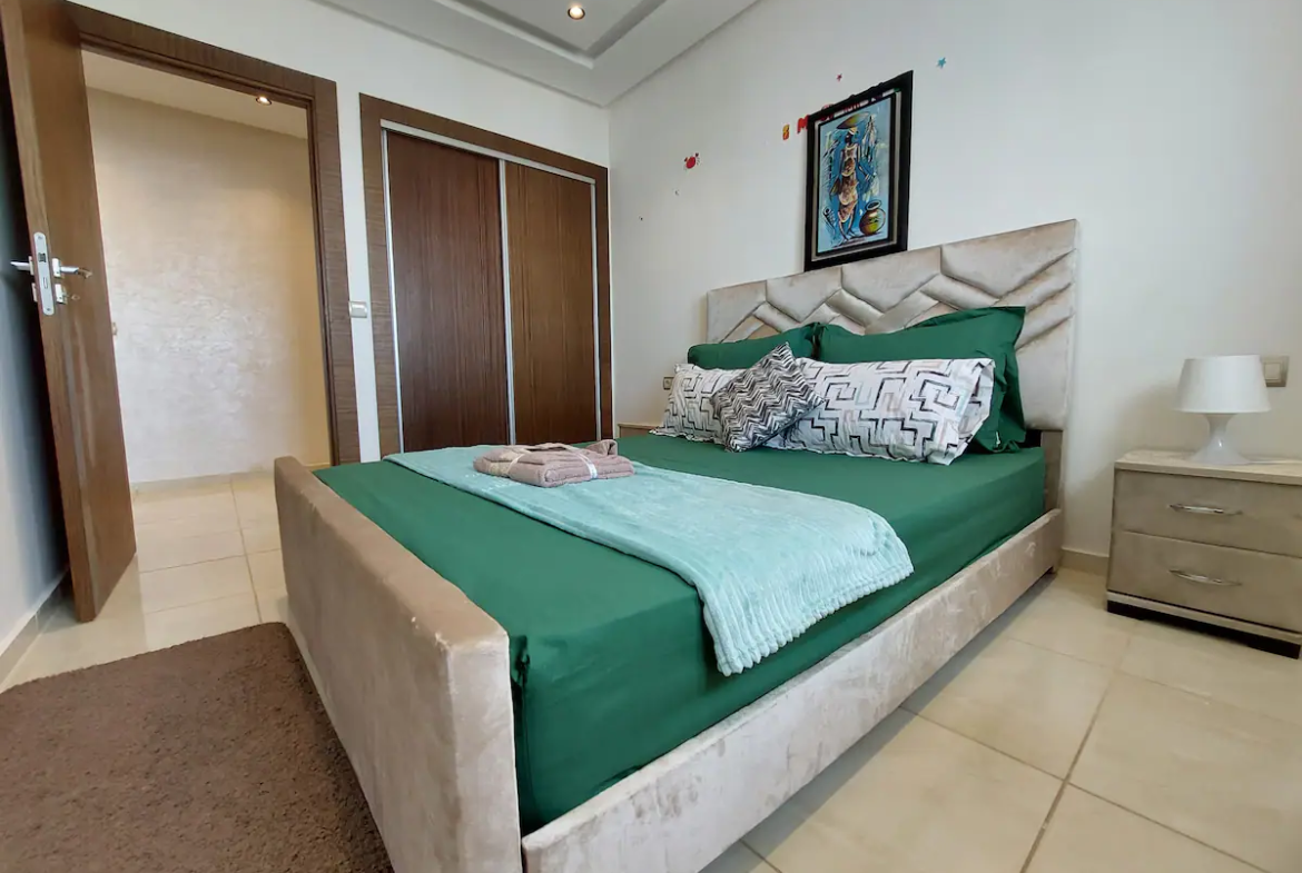 With a spacious living room, 2 bedrooms, a workspace and 2 modern bathrooms, our place is perfect for professionals and families. You’ll enjoy comfortable sleeping arrangements in each of the two bedrooms, as well as a dedicated workspace, perfect for business travelers or remote workers. Our 100Mb optic fiber internet ensures that you’ll have fast and reliable internet access throughout your stay. Our fully equipped kitchen has everything you need to whip up delicious meals during your stay.