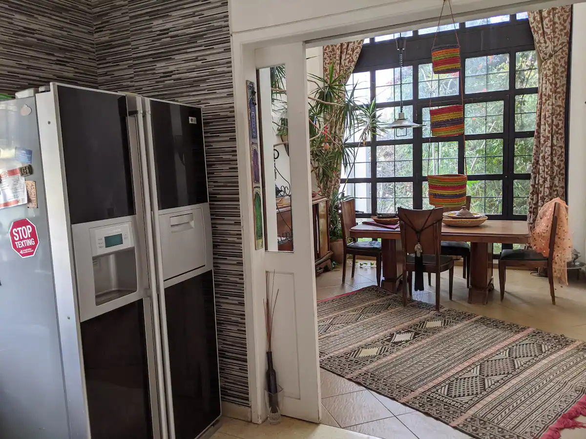 The common spaces — kitchen, living room, and 2.5 bathrooms – are shared with other professionals visiting Rabat.