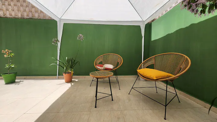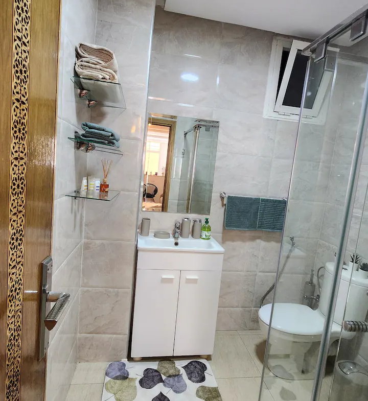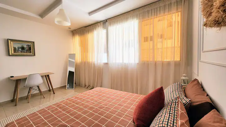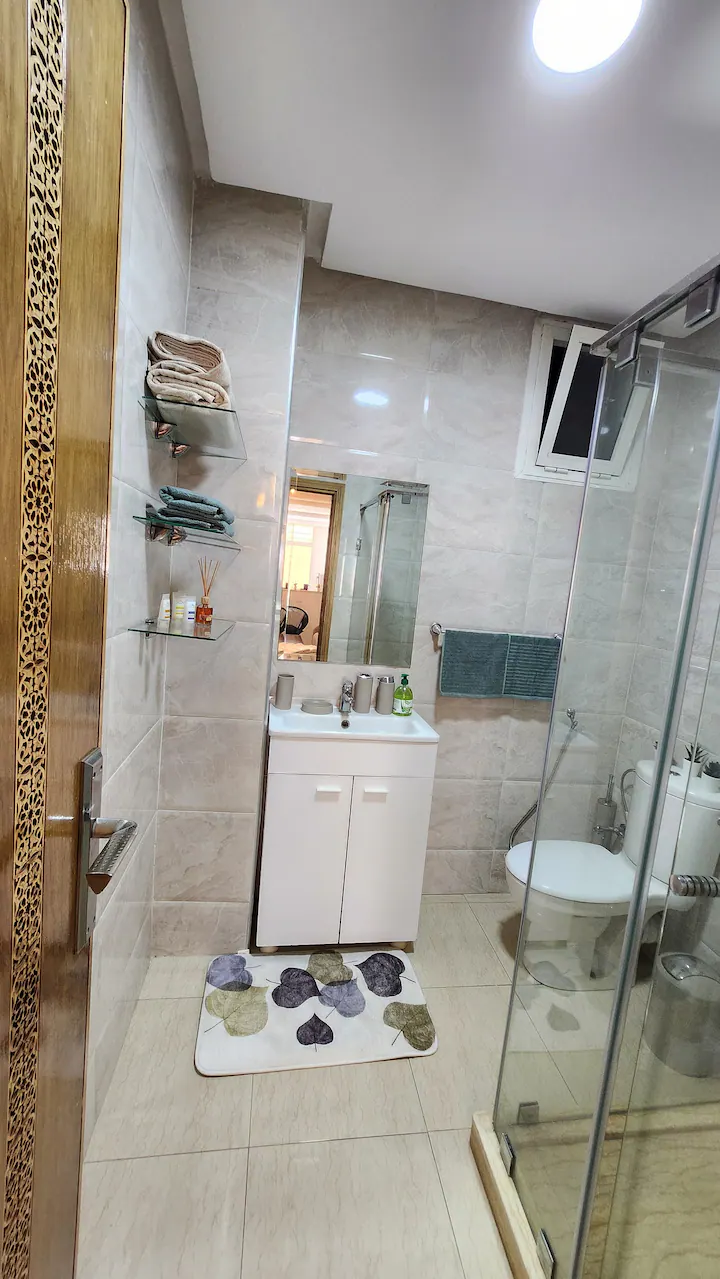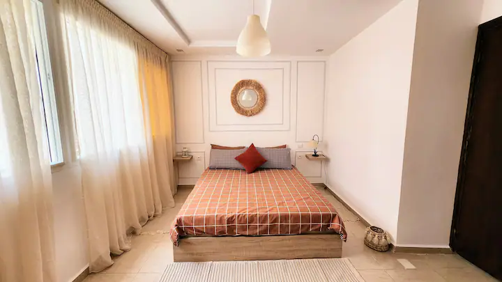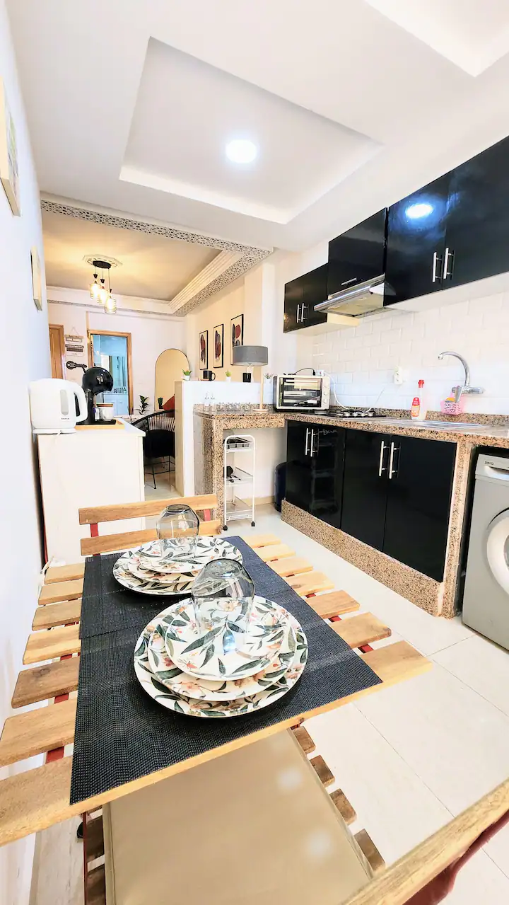 Welcome to our modern condo in the heart of Rabat, just minutes from the Atlantic shore and the historic medina. This stylish retreat features an open-plan living room, a kitchen with all essentials, and a spacious bedroom with ample storage. Step out onto the private patio to enjoy your morning coffee or unwind after a day of exploring. The apartment boasts contemporary furnishings, high-speed internet, and convenient access to cafes, restaurants, and public transportation.